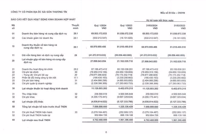 Tính đến ngày 31/3/2024, doanh thu bán hàng và cung cấp dịch vụ của TTC Land chỉ chiếm 0,65% so với tổng tài sản. So với nhiều doanh nghiệp cùng ngành, con số này khá khiêm tốn cho thấy hiệu quả sử dụng tài sản của TTC Land rất kém. Điều đáng nói, giá vốn bán hàng đang ở mức âm 41 tỷ đồng, trong khi đó cuối năm 2023 con số này là âm 59,8 tỷ đồng cho thấy TTC Land hoạt động kém hiệu quả.