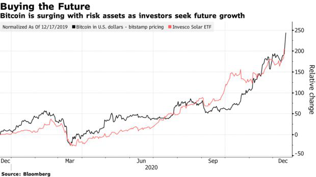 Đồng tiền số này đang “lướt” trên con sóng đầu cơ cùng với các loại tài sản dài hạn, từ cổ phiếu năng lượng mặt trời cho đến Tesla, khi nhà đầu tư đang nháo nhào kiếm tiền từ những công nghệ của tương lai.