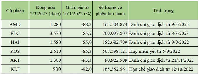 Cổ phiếu AMD của CTCP Đầu tư và Khoáng sản FLC Stone (FLC Stone) bị HOSE chuyển từ diện hạn chế giao dịch sang diện đình chỉ giao dịch kể từ 9/3/2023.
