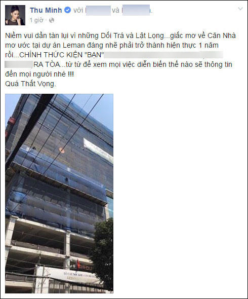Xuất phát chỉ từ một dòng tâm sự trên facebook cá nhân, thể hiện lời lẽ khiếm nhã khi Thu Minh cho rằng chủ dự án “lật lọng và dối trá” liên quan đến việc vợ chồng cô mua 2 căn hộ Penthouse ở dự án này, đồng thời dọa kiện ra tòa.
