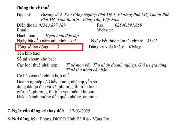 Trong lần công bố thay đổi nội dung đăng ký doanh nghiệp vào giữa tháng 3/2025, LEC Group có tổng số lao động là 3 người.