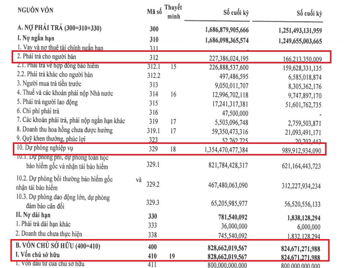 Đáng lưu ý, nợ phải trả của VNI tăng 35%, lên mức gần 1.687 tỷ đồng, cao gấp 2 lần vốn chủ sở hữu (828 tỷ đồng). Nợ phải trả phần lớn là khoản phải trả cho người bán với 227 tỷ đồng tăng 37% so với đầu năm và dự phòng nghiệp vụ với 1.354 tỷ đồng, cũng tăng 37%.