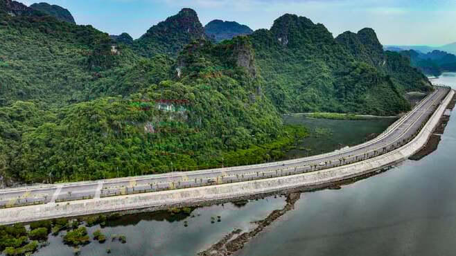 Đặc biệt, điểm nhấn không thể bỏ qua của tuyến đường này chính là đoạn hầm xuyên núi nằm bên vịnh Bái Tử Long. Cụ thể, hai ống hầm xuyên núi, dài 235m, mỗi ống có 3 làn xe với tổng mức đầu tư xây dựng 247,5 tỷ đồng.