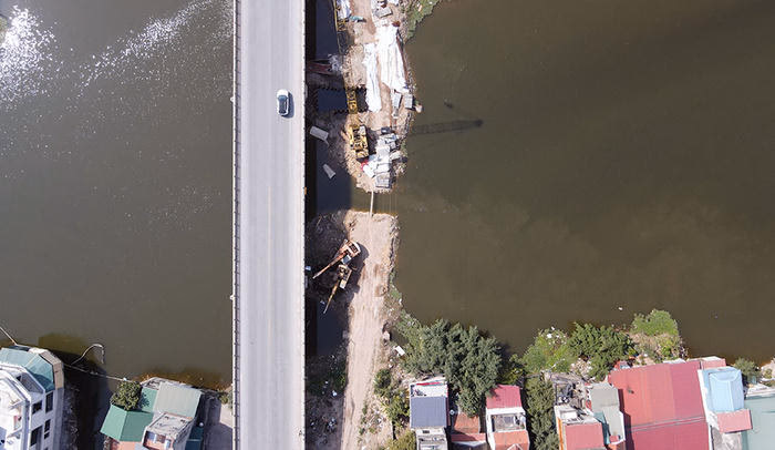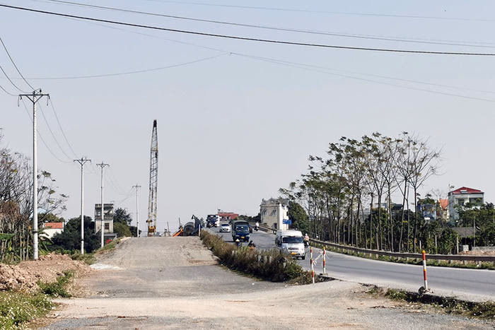 Trong ảnh: Đoạn tuyến nối 2 cao tốc thuộc địa bàn tỉnh Hà Nam bắt đầu từ đoạn giao giữa đường dẫn cầu Thái Hà và cầu Hưng Hà. Phương tiện sẽ đi theo lối cầu Hưng Hà qua địa bàn tỉnh Hưng Yên để vào nút giao Yên Mỹ, cao tốc Hà Nội - Hải Phòng.