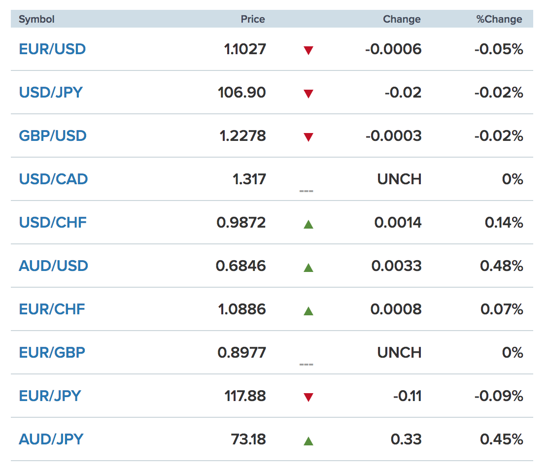 Tỷ giá ngoại tệ các đồng tiền trong rổ tiền tệ thế giới (nguồn CNBC)