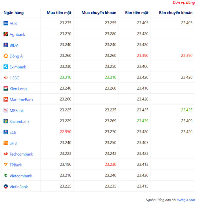 Hiện giá mua USD tại các ngân hàng dao động từ 23.230 – 23.270 VND/USD, trong khi bán ra từ 23.420 – 23.463 VND/USD.