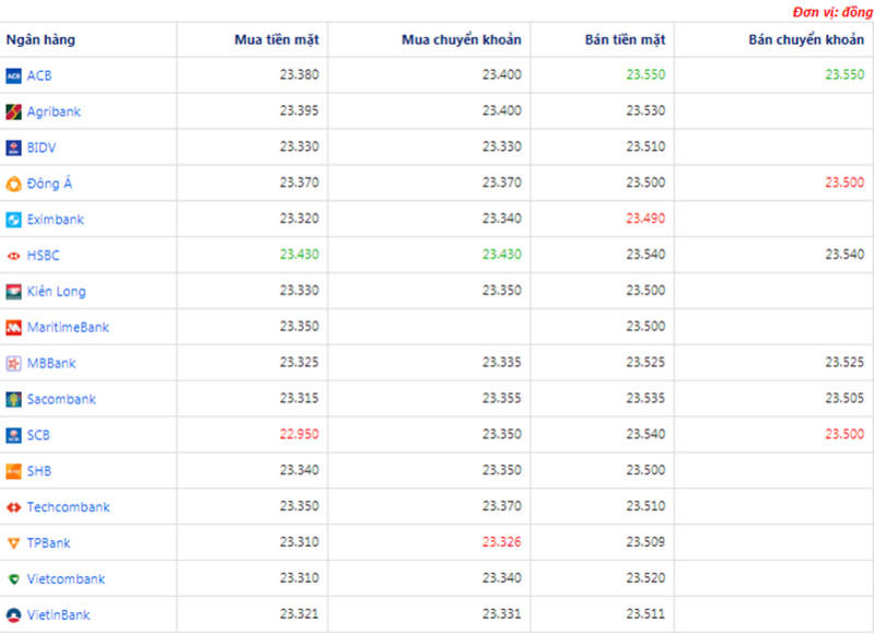 + Ngân hàng HSBC đang mua chuyển khoản USD với giá cao nhất là: 1 USD = 23.430 VND