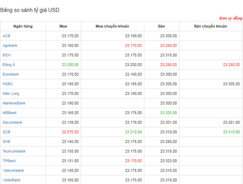 + Ngân hàng Agribank, TPBank đang mua chuyển khoản USD với giá thấp nhất là: 23.170,00 vnđ / 1 USD