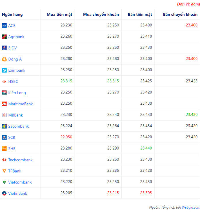 + Ngân hàng ACB, Đông Á đang bán chuyển khoản USD với giá thấp nhất là: 1 USD = 23.400 VND