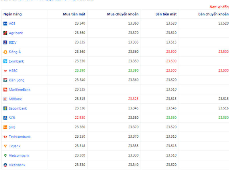 + Ngân hàng Đông Á, HSBC đang bán chuyển khoản USD với giá thấp nhất là: 1 USD = 23.500 VND