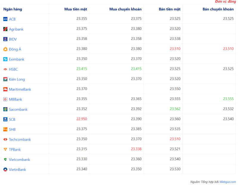 + Ngân hàng HSBC đang mua chuyển khoản USD với giá cao nhất là: 1 USD = 23.415 VND