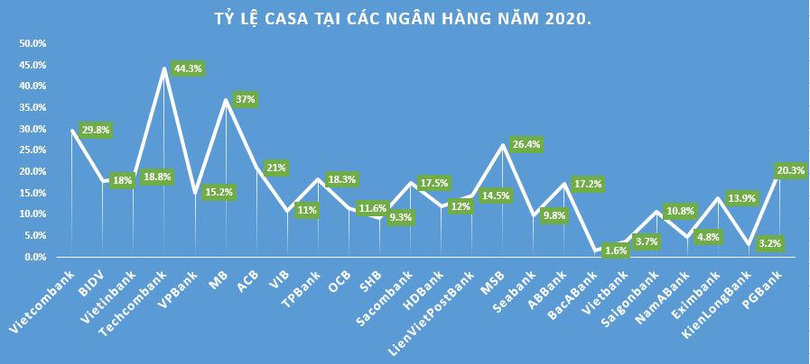 Tỷ lệ CASA các ngân hàng năm 2020 biến động ra sao?