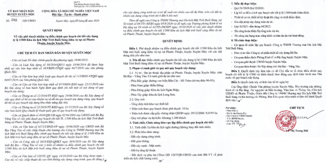 Theo đó, về nội dung điều chỉnh, phía Công ty TNHH Thương mại – Du lịch Mặt trời buổi sáng phải thay đổi quy mô và hình dáng một số hạng mục công trình, nhằm tối ưu hướng nhìn và cảnh quan chung.