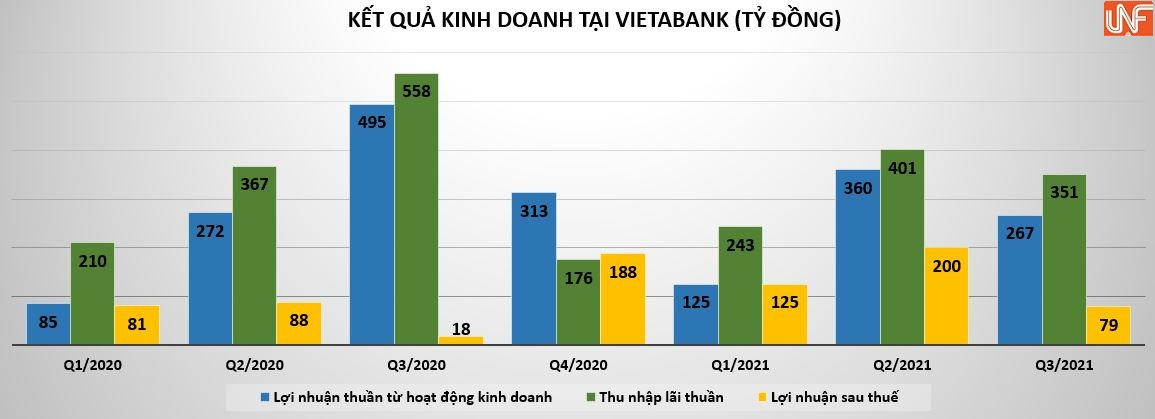 Lợi nhuận thuần từ hoạt động kinh doanh giảm đến 47%, chỉ còn 267 tỷ đồng. Tuy nhiên, trong quý 3/2021, VietABank giảm đến 71% chi phí dự phòng rủi ro tín dụng, chỉ còn trích 140 tỷ đồng, do đó thu về 126 tỷ đồng lãi trước thuế, gấp 7 lần so với cùng kỳ.