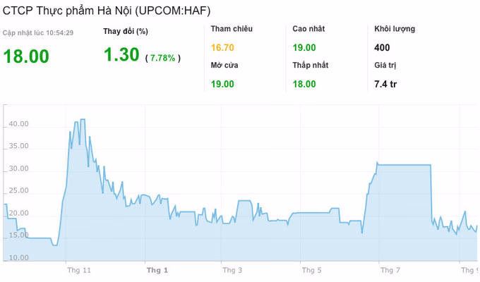 Chỉ mấy ngày sau đó, trong 2 ngày 30/6 và 1/7/2021 có đúng 3.719.923 cổ phiếu HAF được giao dịch thoả thuận tiếp, trong đó ngày 1/7 là 3.500.200 cổ phiếu được thoả thuận. Tổng giá trị các giao dịch thoả thuận này hơn 100 tỷ đồng, tương ứng giá thoả thuận bình quân 26.882 đồng/cổ phiếu. Cũng trong ngày 1/7/2021 Văn Phú Invest công bố thông tin bán hết hơn 3,5 triệu cổ phiếu HAF, không còn là cổ đông lớn của Thực phẩm Hà Nội.