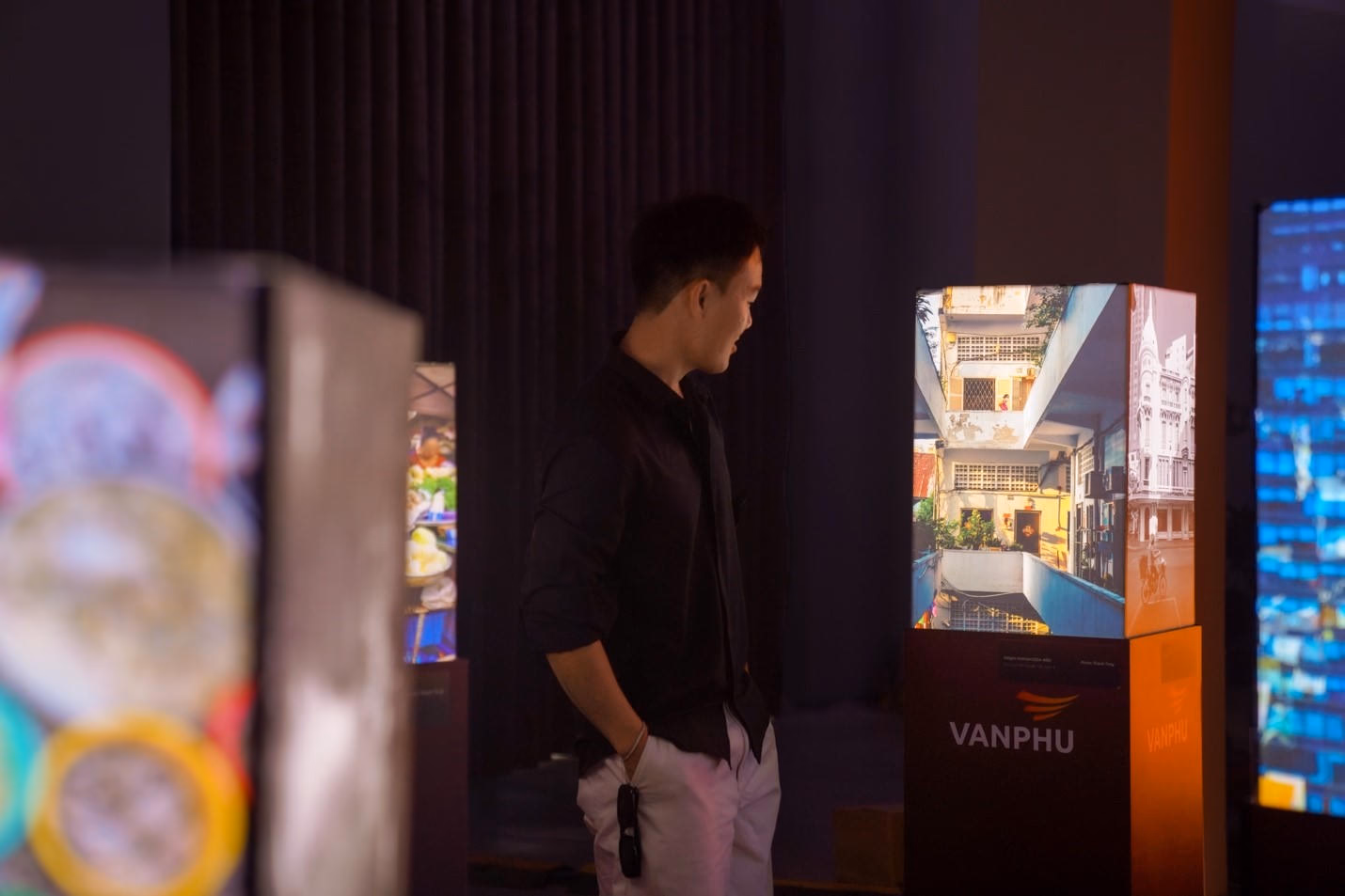 Khu vực trung tâm – cũng là điểm cao trào của toàn bộ triển lãm – được thiết kế như một immersive room, nơi các lớp trải nghiệm thị giác, âm thanh và công nghệ được sắp đặt có chủ ý đưa người tham gia đi sâu hơn vào câu hỏi “Tổ ấm đáng giá bao nhiêu”. Tại đây, bộ ảnh “Saigon 365” của Nguyễn Thanh Tùng và Bill Nguyễn mở ra những lát cắt rất đời thường của Sài Gòn, nơi “nhà” không còn là một không gian cố định mà có thể hiện diện trong một khoảnh khắc, một góc phố hay một cảm giác thoáng qua.