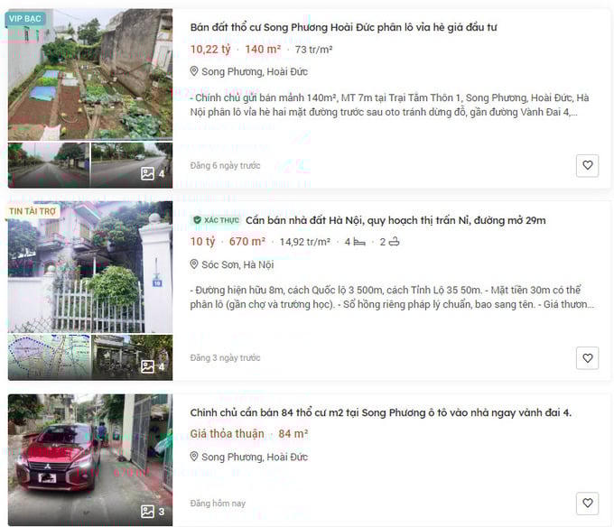 Theo một môi giới tại xã Song Phương cho biết, đầu năm 2022, giá đất ở các xã Song Phương, Đức Thượng, Dương Liễu, Tiền Yên đạt trung bình 40-50 triệu đồng/m2 nhưng hiện tăng lên khá mạnh, dao động từ 50-70 triệu đồng/m2.