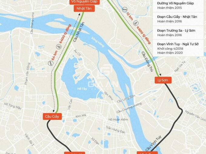Tuyến đường Vành đai 2 được xem là 1 trong số 7 tuyến đường vành đai của TP. Hà Nội. Đây là dự án lớn, được xây dựng trong vòng 20 năm với tổng kinh phí hơn 2 tỷ USD. Một số công trình điển hình của đường vành đai 2 như: Cầu Nhật Tân (13.500 tỷ đồng); đường Hoàng Sa - Trường Sa (6.600 tỷ đồng); đường Võ Chí Công (hơn 6.600 tỷ đồng); nút giao trung tâm Q. Long Biên (2.800 tỷ đồng)...