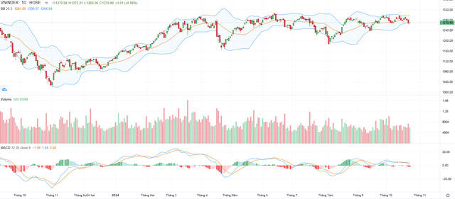 Về xu hướng trung hạn, chỉ số VN-Index tăng trưởng trên vùng hỗ trợ quanh 1.250 điểm, hướng đến vùng 1.300 điểm, mở rộng lên 1.320 điểm. Trong đó vùng giá 1.300 điểm, vùng kháng cự rất mạnh tương vùng vùng giá cao nhất đầu từ đầu năm 2024 và đỉnh giá tháng 06-08/2022.