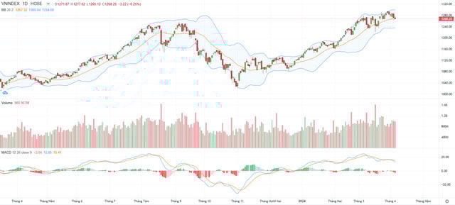 Mặc dù thanh khoản phiên hôm 4/4 giảm so với phiên trước nhưng vẫn ở mức cao cho thấy tâm lý của nhà đầu tư không còn lạc quan. Khả năng nhịp điều chỉnh sẽ còn tiếp diễn trong các phiên tới, ngưỡng hỗ trợ trong phiên ngày 5/4 được kỳ vọng ở mốc 1.260 điểm.
