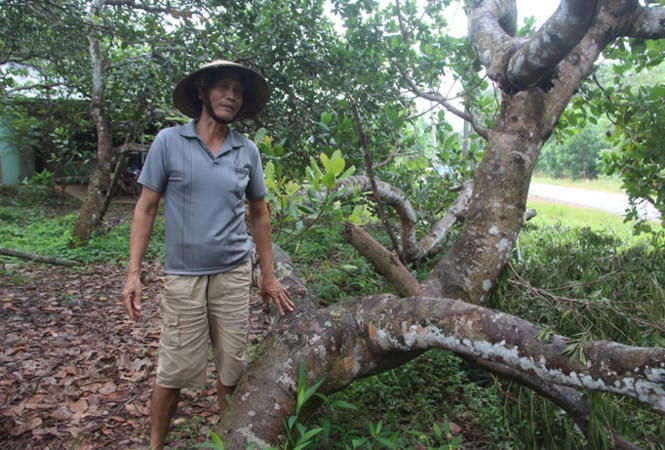 Ông Đỗ Văn Đường bên những gốc cây điều già cỗi. Ảnh: Mạnh Thắng.