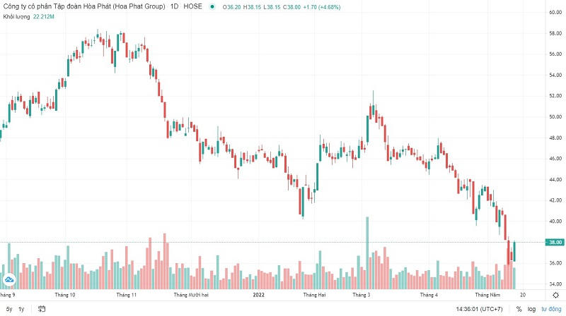 Trên thị trường chứng khoán, cổ phiếu HPG giảm mạnh từ đầu tháng 3 đến nay, hiện đang ở vùng giá cách đây đúng 1 năm 38.000 đồng/cổ phiếu.