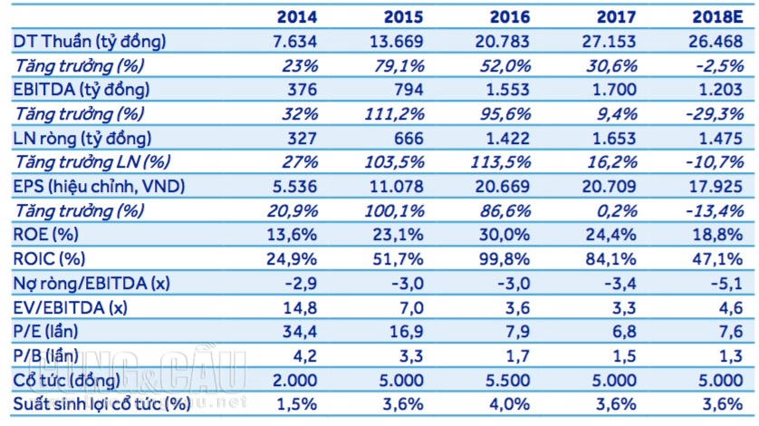 Tuy nhiên, biên lợi nhuận gộp giảm xuống 6,4% trong quý IV 2017 từ 8% trong 9 tháng đầu năm và 8,3% trong quý IV năm 2016 vì giá thép tăng 5% trong quý 4 và 20% tính chung cả năm 2017. Vấn đề xa hơn, VCSC dự phóng kết quả kinh doanh của CTD cho thấy, biên lợi nhuận của công ty sẽ tiếp tục giảm trong 2 năm tới và chỉ phục hồi vào năm 2020.