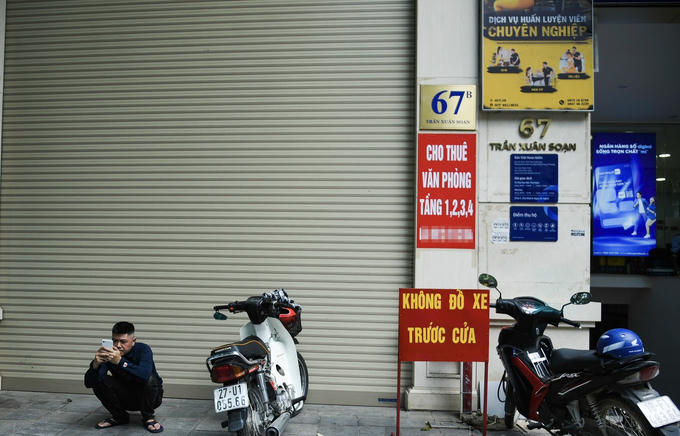 Tại phố Huế với tòa nhà có diện tích khá rộng cũng treo biển rao cho thuê. Theo ông Hùng, bảo vệ tòa nhà bên cạnh cho hay, thời gian gần đây, nhiều người cũng đến hỏi thuê nhưng chủ yếu là môi giới vì thế chủ nhà ở đây đã từ chối.
