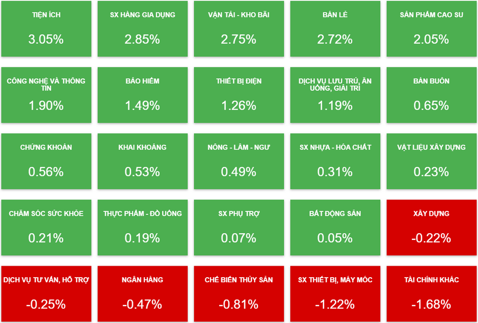 Tuy nhiên sau đó, VIC đã không thể giữ được mức giá trần nhưng mức tăng của cổ phiếu này vẫn khá tốt và tiếp tục là động lực chính giữ cho các chỉ số đi lên. Chốt phiên, VIC tăng 6,5% lên 114.500 đồng/cp, VRE tăng 2,9% lên 28.300 đồng/cp, còn VHM tăng 2,6% lên 110.900 đồng/cp. Động lực tăng của nhóm này được cho là đến từ thông tin Vingroup đang hợp tác với Arcturus trong việc chuyển giao công nghệ sản xuất vaccine, dự kiến sẽ bắt đầu thử nghiệm lâm sàng tại Việt Nam từ tháng 8. Nếu thành công, nhà máy Vingroup sẽ có năng lực sản xuất 100 - 200 triệu liều vaccine hàng năm.