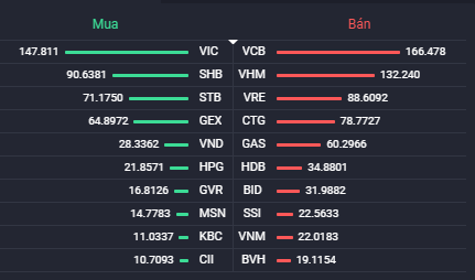 Trong đó, VIC là nhân tố quan trọng tạo nền vững chắc giúp VN-Index có cơ hội bứt phá. VIC tăng đến 3,7% lên 117.000 đồng/cp và khớp lệnh 5,2 triệu cổ phiếu. Trong những thời điểm thị trường rung lắc, VIC cũng là trụ đỡ vững chắc nhất giúp VN-Index giữ được sắc xanh.