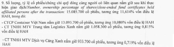 Như vậy, tính đến hiện tại, tổng số cổ phiếu HAH mà nhóm Viconship và các bên liên quan đang nắm giữ là hơn 15 triệu cổ phiếu, tương ứng 11,614% vốn điều lệ của Xếp dỡ Hải An.