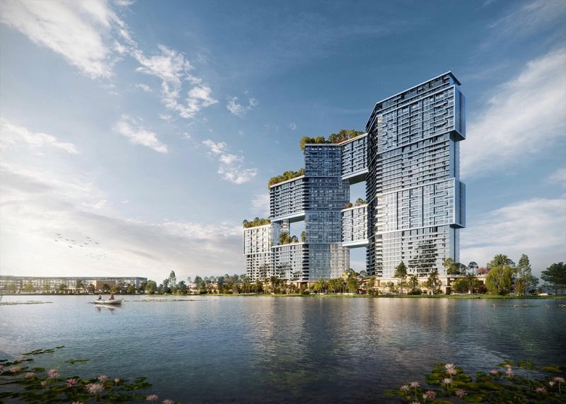 Dự án Sky Forest gồm 3 toà tháp, có độ cao gần 200m, soi mình bên vịnh đảo rộng mênh mông với diện tích mặt nước lên tới 50 ha.