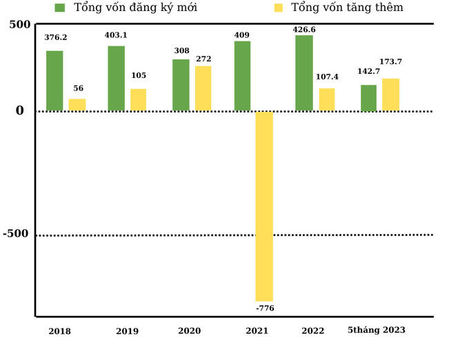 Cục Đầu tư nước ngoài, Bộ Kế hoạch và Đầu tư cho biết, trong 5 tháng đầu năm 2023, tổng vốn đầu tư của Việt Nam ra nước ngoài cấp mới và điều chỉnh đạt gần 316,4 triệu USD (bằng 93,5% so với cùng kỳ).