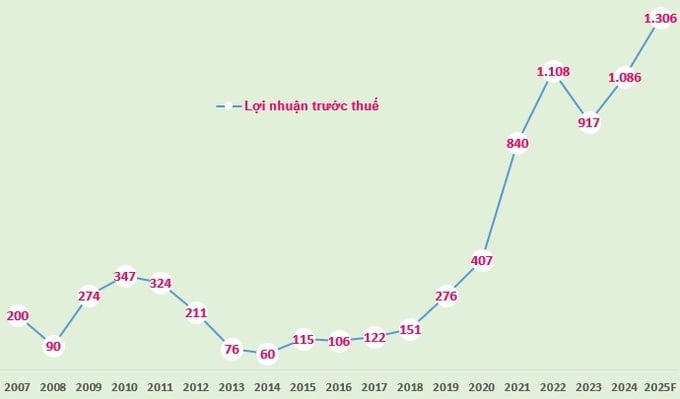 Lợi nhuận trước thuế tăng 20,3% (+220 tỷ đồng) so với năm trước, đạt 1.306 tỷ đồng.