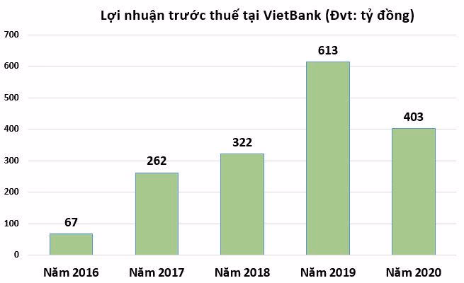 Quý 4/2020 do lợi nhuận thuần từ hoạt động kinh doanh giảm đến 95% so với cùng kỳ, chỉ còn 10,8 tỷ đồng. Dẫn đến lợi nhuận trước và sau thuế tại VietBank chỉ còn hơn 29 tỷ đồng và hơn 23 tỷ đồng, giảm mạnh đến 84% và 82%.