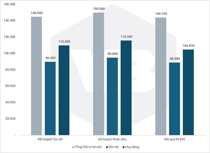Báo cáo tài chính bán niên hợp nhất của Vietbank ghi nhận 3 mục tiêu tăng trưởng huy động, dư nợ, tổng giá trị tài sản hoàn thành trên 90% kế hoạch phấn đấu chỉ sau nửa năm tài chính. Trong đó, tăng trưởng dự nợ đạt 10% cao hơn mức bình quân toàn ngành 6% (tính đến 28/6/2024).