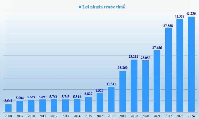 Năm 2024, Vietcombank đạt 42.236 tỷ đồng lợi nhuận trước thuế, tăng 2% so với năm 2023, tiếp tục là ngân hàng có quy mô lợi nhuận dẫn đầu thị trường.