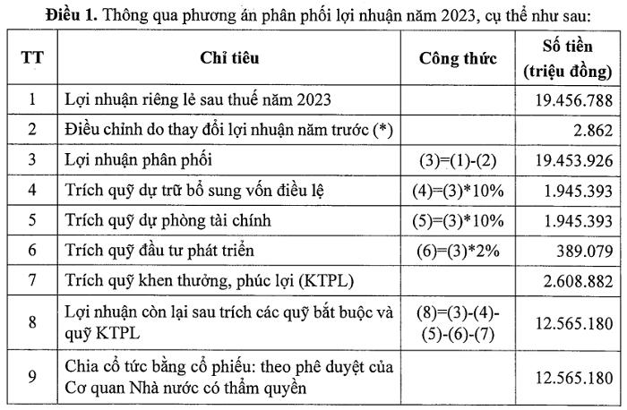 VietinBank sẽ dùng khoản lợi nhuận 12.565 tỷ đồng này để chia cổ tức bằng cổ phiếu theo phê duyệt của cơ quan Nhà nước có thẩm quyền.