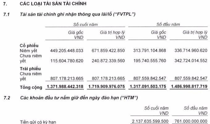 Còn số liệu trên BCTC quý 1/2022 trình bày tổng tài sản tài chính ghi nhận thông qua lãi/lỗ đạt hơn 1.800 tỷ đồng, trong đó giá trị trái phiếu chưa niêm yết tăng gần 200 tỷ đồng lên trên 1.000 tỷ đồng. Tổng giá trị cho vay margin và ứng trước tiền bán chứng khoán cũng tăng lên xấp xỉ 1.800 tỷ đồng.