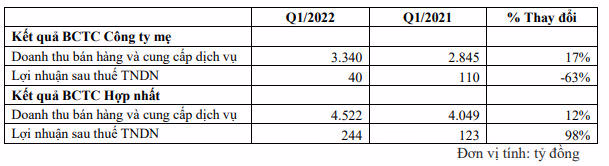 Mặc dù được hỗ trợ bởi doanh thu hoạt động tài chính nhưng tính theo quý 1 hàng năm (không kể khoản thua lỗ 989 tỷ đồng của quý 1/2020), lợi nhuận sau thuế quý 1/2022 vẫn thấp hơn nhiều so với các năm từ 2019 trở về trước.