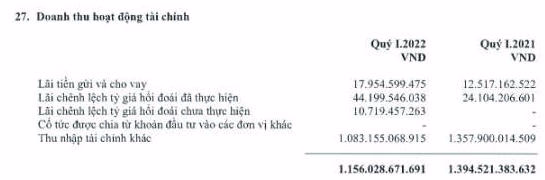 Quý 1/2022 lãi lớn đến từ khoản chưa được công khai