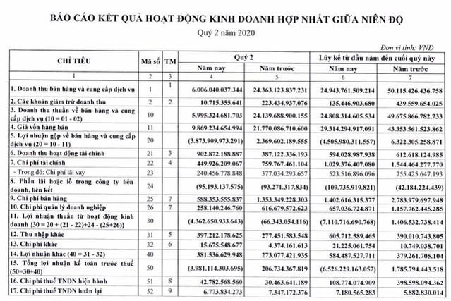 Trong 3 tháng đầu năm 2020, doanh thu hợp nhất ước đạt 19.212 tỷ đồng, giảm 26% so với cùng kỳ năm 2019; lỗ 2.383 tỷ đồng.