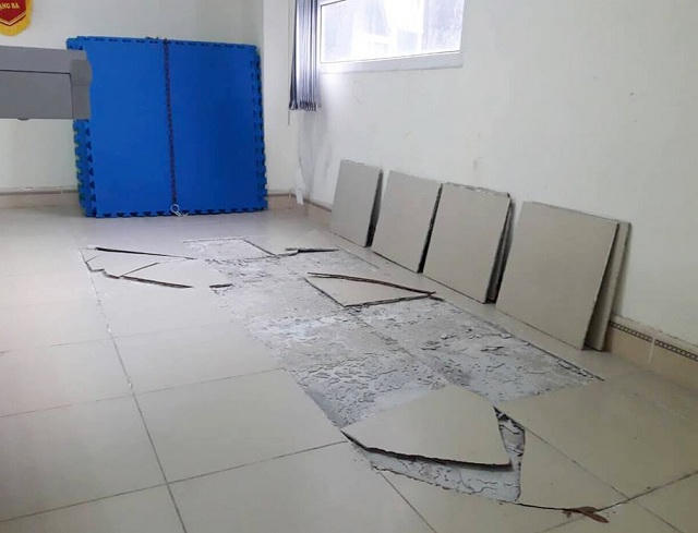 Tình trạng nền hành lang xuống cấp nhưng không có kinh phí sửa chữa.