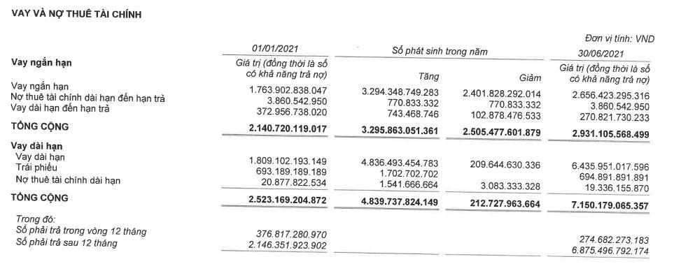 Do tăng cường hoạt động vay nợ, cả số dư nợ vay ngắn hạn và dài hạn của VCG tại thời điểm ngày 30/6/2021 đều tăng mạnh so với thời điểm ngày 01/01/2020.