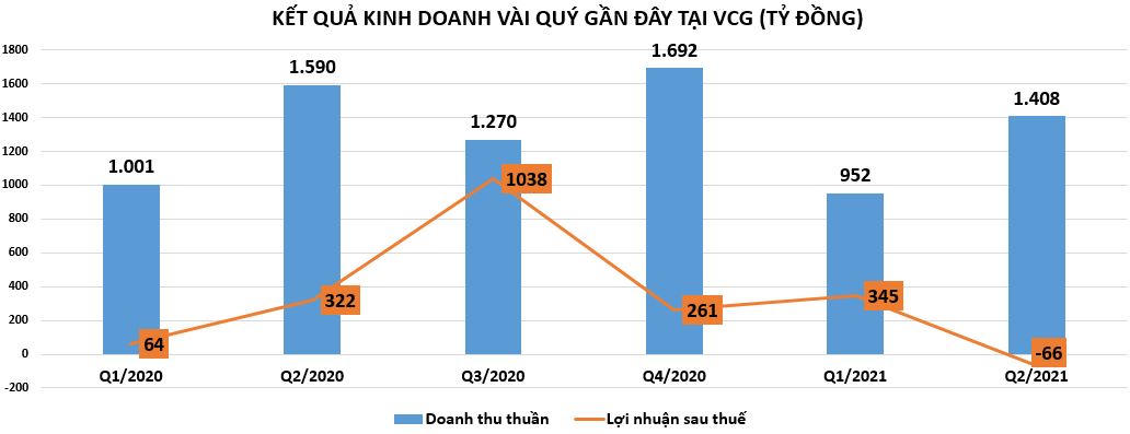 Do đó, lợi nhuận sau thuế tại VCG lỗ gần 66 tỷ đồng trong khi cùng kỳ năm trước lãi hơn 349 tỷ đồng.