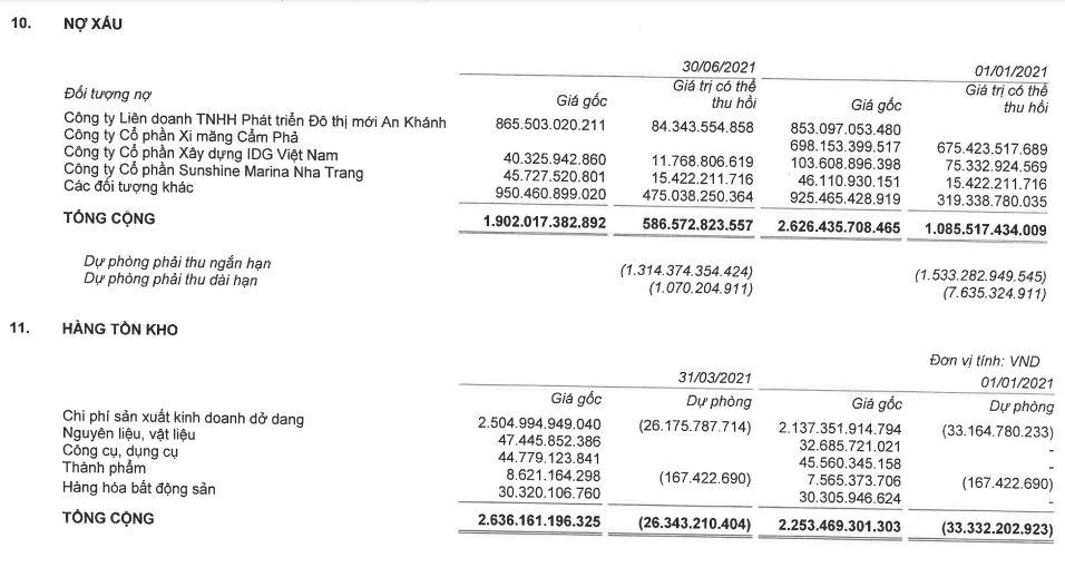 Lưu ý, cuối quý 2/2021, VCG có hơn 1.902 tỷ đồng nợ xấu, trong đó có hơn 1.315 tỷ đồng là chi phí dự phòng nợ xấu. Nợ xấu tập trung chủ yếu ở Công ty Liên doanh TNHH Phát triển Đô thị mới An Khánh với hơn 865 tỷ đồng. Ngoài ra, tại CTCP xấy dựng IDG Việt Nam có hơn 40 tỷ đồng và CTCP Sunshine Marina Nha Trang với gần 46 tỷ đồng;... Việc trích lập dự phòng nợ xấu cũng là lý do khiến lãi ròng tại VCG giảm mạnh.