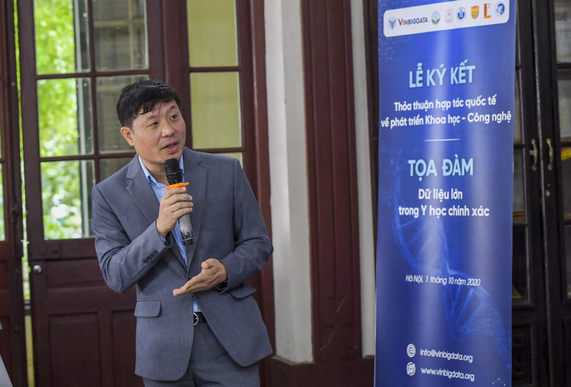 “Khoa học dữ liệu đóng vai trò quan trọng trong việc xây dựng nền tảng cũng như tạo ra những đột phá quan trọng cho nhiều ngành khoa học, trong đó có Y học chính xác. VinBigdata kì vọng việc hợp tác nghiên cứu, đồng thời tận dụng những đột phá công nghệ, sẽ là cơ sở để phát triển các phương pháp hỗ trợ phòng ngừa và điều trị bệnh hiệu quả, mang lại lợi ích thiết thực cho cộng đồng” - GS. Vũ Hà Văn, Giám đốc Khoa học Viện Nghiên cứu Dữ liệu lớn (Tập đoàn Vingroup) chia sẻ tại Lễ ký kết.