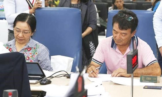 Một nhà đầu tư nước ngoài (bên phải) đang làm thủ tục tại sàn giao dịch BĐS Vinhomes Thảo Điền.