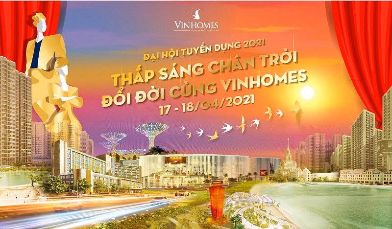 Trong 2 ngày 17 và 18/4/2021, thương hiệu bất động sản số 1 Việt Nam – Vinhomes sẽ tổ chức Đại hội tuyển dụng 2021 với tên gọi “Thắp sáng chân trời – Đổi đời cùng Vinhomes” tại Công viên Thống Nhất (Hà Nội) và Nhà văn hóa Thanh niên (TPHCM). Gần 120 đại lý chính thức của Vinhomes sẽ trực tiếp tuyển dụng nhân viên kinh doanh bất động sản, mang tới hàng nghìn cơ hội việc làm cho các bạn trẻ.