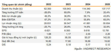 VNDirect ước tính doanh thu bán trước của Vinhomes sẽ đạt 103.200 tỷ đồng (tăng 8% so với cùng kỳ) trong năm 2024 và 150.200 tỷ đồng (tăng 45,5%) trong năm 2025. Trong đó, mức tăng trưởng lớn trong năm 2025 chủ yếu đến từ các dự án Vinhomes Hạ Long Xanh (Quảng Ninh) và Vinhomes Long Beach (Cần Giờ, TP.HCM).